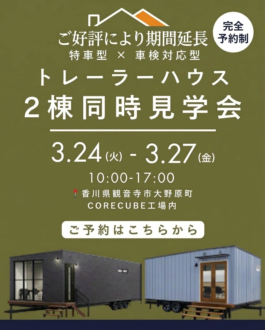 CORECUBE(コアキューブ)は、香川県観音寺市で商業施設・工業施設等の建具の製造加工を行うコアスリーが製作と販売を行うトレーラーハウスブランドです。これから何かを始める人にとって使いやすく、様々なシーンに合わせて設置できる移動空間としてご利用ください。