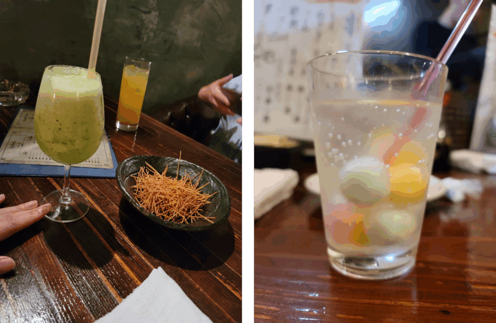 そして、日が暮れるころには居酒屋に座り、(アイスの実ハイボールというのがありましたので、見た目に誘われ頼んでみました。)